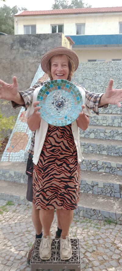 Friend and mosaic enthusiast Astrid is also there, cutting and piecing together her own piece, chatting along in between. She does it with one head and two hands, and the results are just as beautiful: